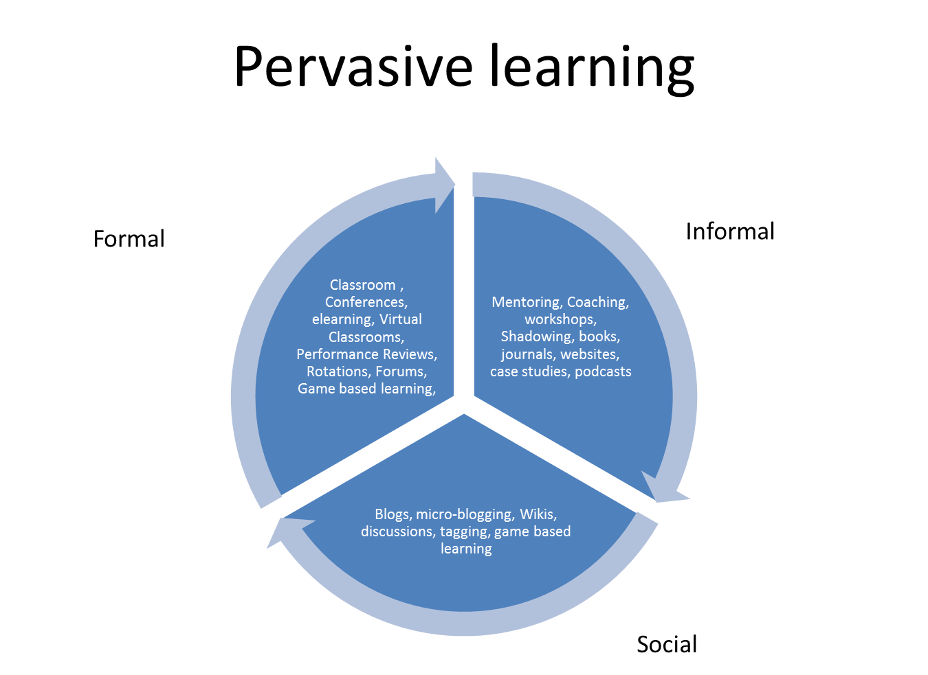 The Pervasive Learning model is one where learning is a collaborative, continuous, connected, and community-based growth and development attitude. Certainly those that have entered the freelance market over the last 5 years will agree with this statement, for this approach has ensured their sustainability longer than market averages for self-employed people. If it can work for this community (where competitors are collaborating to learn), why not everyone else?