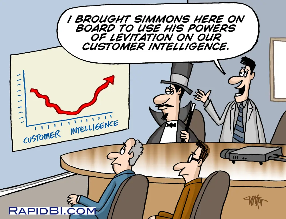Cartoon – I brought Simmons here on board to use his powers of levitation on our customer intelligence